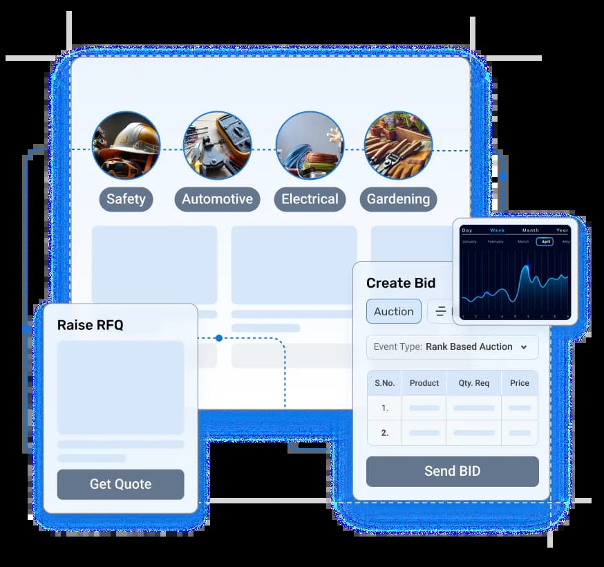 eAuction platform enables enterprises to conduct transparent, real-time digital auctions for goods and services. Buyers can easily create, manage, and track auctions via an intuitive dashboard with features like bidder mapping, auto-extension, and post-auction analytics. The platform drives competitive pricing and data-backed sourcing decisions, helping businesses to have faster negotiations, competitive bidding, and streamlined sourcing.